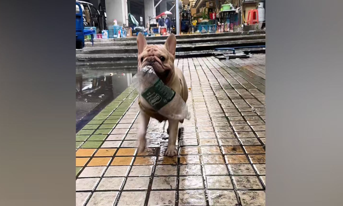Un bulldog francés en Guangzhou se vuelve viral en redes sociales por recolectar botellas vacías durante 5 a?os