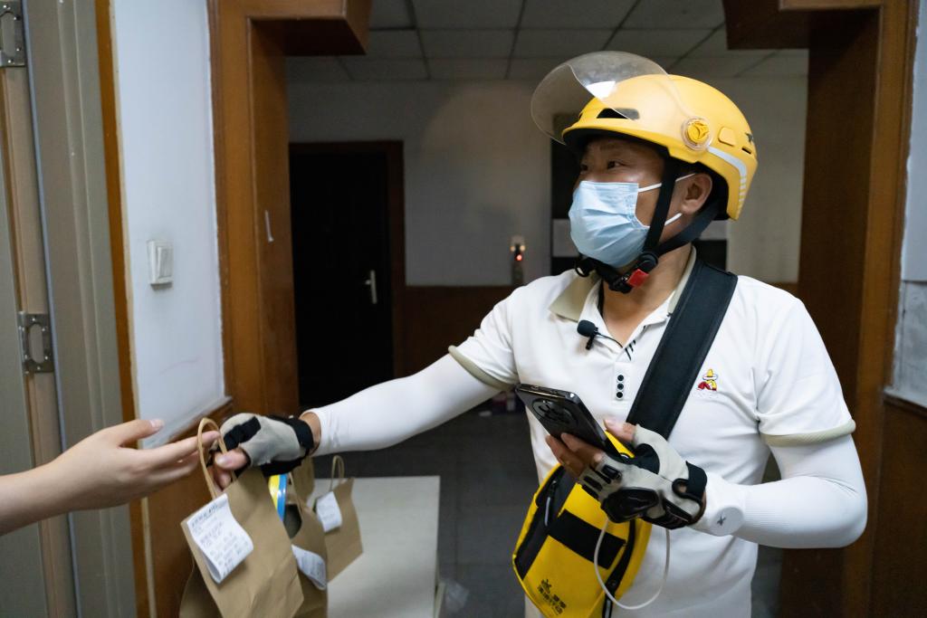 Por Dong Senhe Meng Shixiang entrega un pedido a un cliente en Beijing, 22 de julio del 2025.…
