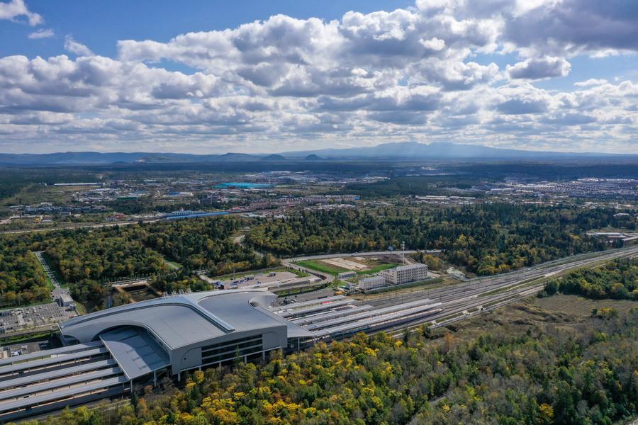 Esta foto aérea, tomada el 26 de septiembre de 2025, muestra la estación de trenes de la monta?a Changbai, en el tramo Shenyang-Baihe del ferrocarril de alta velocidad Shenyang-Jiamusi, en la prefectura autónoma coreana de Yanbian, en la provincia de Jilin, noreste de China.…