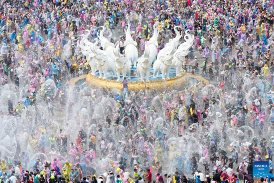 KUNMING, 15 abril, 2025 (Xinhua) -- Turistas y locales celebran el festival de salpicaduras de agua en una plaza, en la ciudad de Jinghong, en la prefectura autónoma de la etnia dai de Xishuangbanna, en la provincia de Yunnan, en el suroeste de China, el 15 de abril de 2025.…