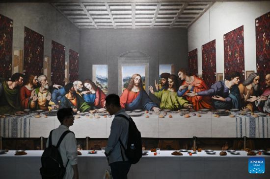 BEIJING, 5 junio, 2025 (Xinhua) -- Visitantes observan la versión restaurada digitalmente de La Ultima Cena de Leonardo da Vinci durante la exposición "Armonía a través del tiempo y el espacio: Cómo Leonardo da Vinci creó la concordia entre su mundo artístico y científico y el mundo natural" en el Museo de Historia Natural de China, en Beijing, capital de China, el 5 de junio de 2025.…