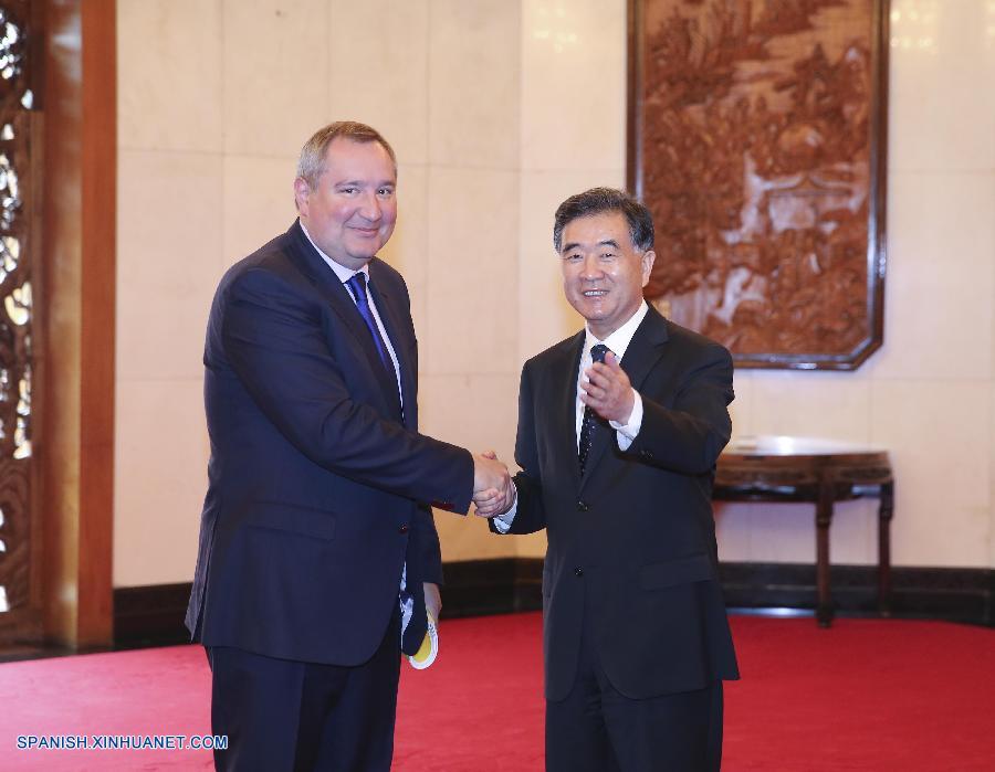 BEIJING, 19 may (Xinhua) -- El viceprimer ministro de China Wang Yang conversó hoy con el viceprimer ministro de Rusia Dmitry Rogozin en Beijing, capital de China.