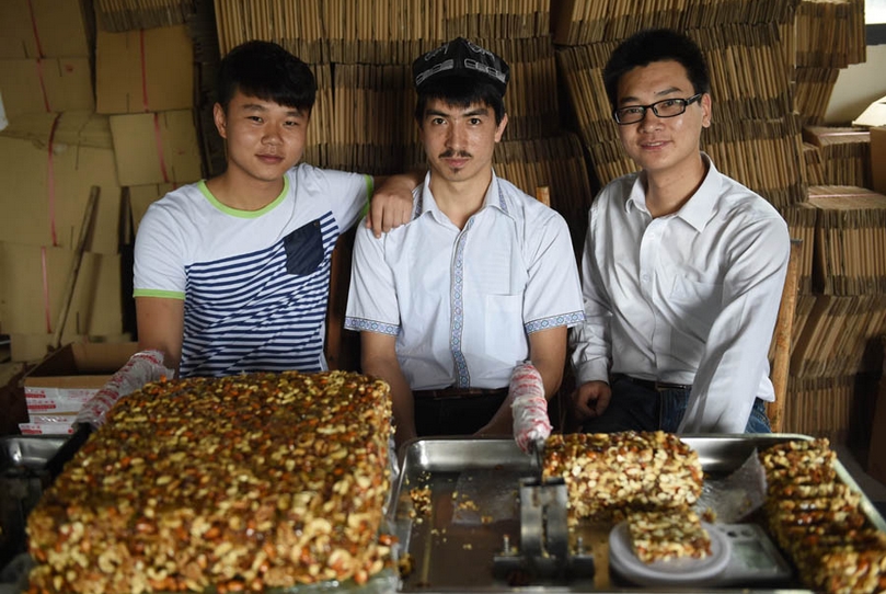 Adili, responsable de producción, demostró que tiene el talento para hacer Qiegao, y poco a poco, sus pasteles de nueces han ganado fama en internet.