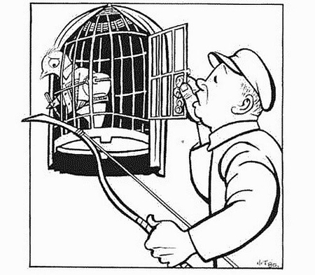 Un cómic de Ding Cong titulado "un pájaro sorprendido por la vibración de una cuerda de arco".[Foto/china.com.cn]