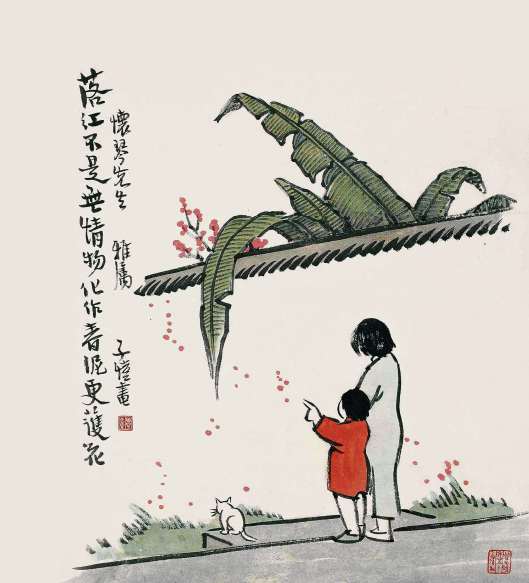 Un cómic de Feng Zikai (1898-1975) titulado "los pétalos caídos no son despiadados". [Foto/namoc.org]