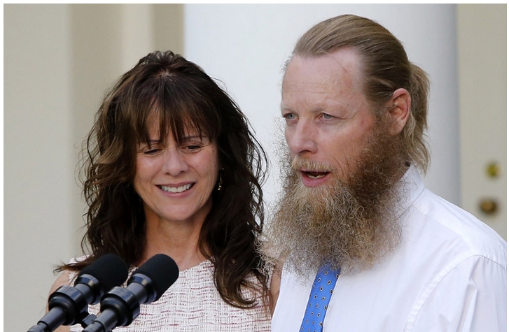 Bob Bergdahl (derecha) y Jami Bergdahl hablan con los reporteros mientras que el presidente Barack Obama (no visible en la foto) ofrece una declaración sobre la liberación de su hijo, el sargento Bowe Bergdahl, en el Rose Garden de la Casa Blanca en Washington, el 31 de mayo de 2014.[Foto/agencias]