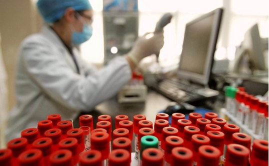 Un trabajador de sanidad introduce información sobre una prueba de VIH en un ordenador de un hospital de Nantong, en provincia de Jiangsu, el 29 de noviembre de 2012.