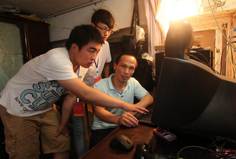 Esta foto del 1 de junio muestra a voluntarios ayudando a Li Jinsheng a prepararse para el gaokao. [Foto/CFP]