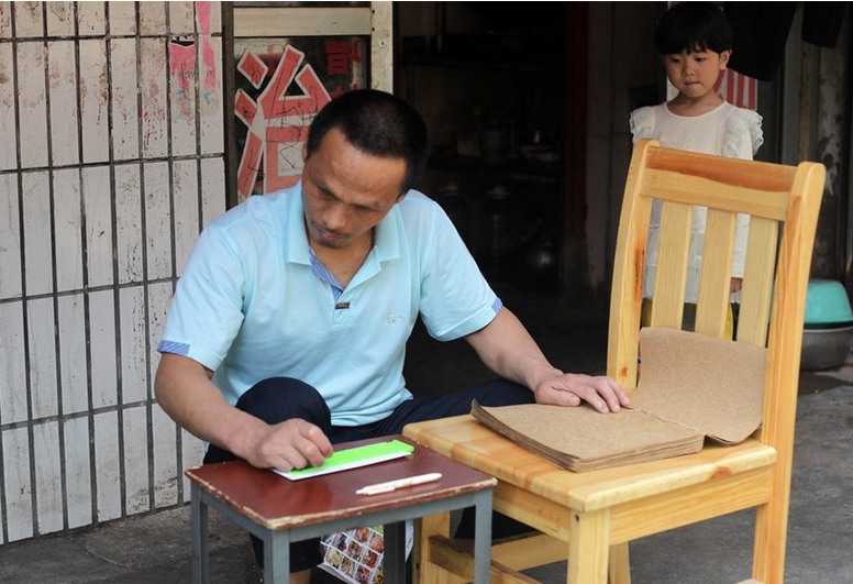 Li Jinsheng se prepara para el gaokao mientras intenta leer una revista en Braille, en Zhumadian, provincia de Henan, el 2 de junio. Solicitó hacer el examen con un audio pero aún no ha recibido respuesta y por lo que tendrá que hacer la prueba en Braille. [Foto/CFP]