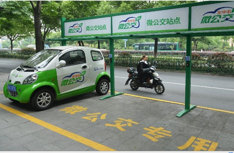 Un coche eléctrico compacto estacionado en un punto de alquiler público de vehículos en Hangzhou, capital de la provincia de Zhejiang, el 3 de junio de 2014. Hangzhou lanzó un servicio público de alquiler de coches eléctricos, conocido como el "micro transporte público", en octubre de 2013. Los usuarios pagan a una tarifa por hora y pueden devolver los coches en cualquiera de los puntos de alquiler de "micro transporte público" de la ciudad. [Foto/Xinhua]
