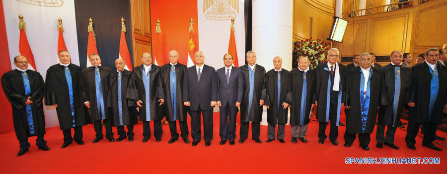 El saliente presidente interino, Adly Mansour, el primer ministro, Ibrahim Mahlab, junto con los miembros de su gabinete, así como muchos otros dignatarios asistieron a la investidura.