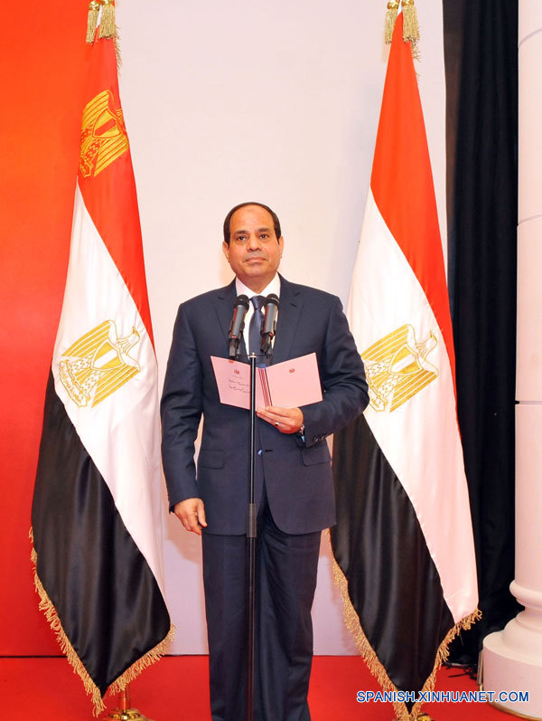 EL CAIRO, 8 jun (Xinhua) -- El exjefe del ejército de Egipto, Abdel-Fattah al-Sisi, tomó juramento como nuevo presidente del país en el Tribunal Constitucional Supremo hoy domingo por la ma?ana, cerca de un a?o después del derrocamiento del presidente islamista Mohamed Morsi.
