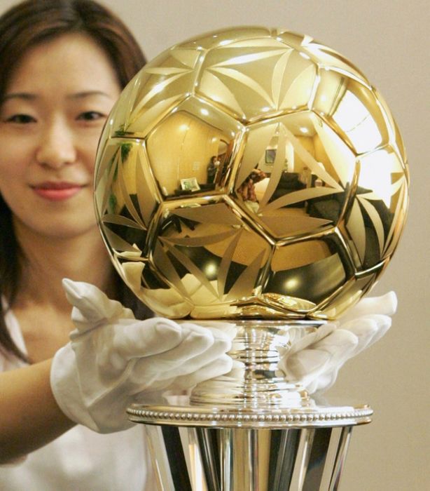 La empresa operadora de grandes almacenes Takashimaya Co pone a la venta un balón de fútbol de tama?o real hecho de oro macizo el 27 de mayo de 2006 en Tokio, para conmemorar la Copa del Mundo 2016, que se celebrará en Alemania entre junio y julio de ese a?o. El precio del balón de tres kilos, incluyendo gastos de fabricación y el pedestal, es de 20,06 millones de yenes. [Foto/IC]
