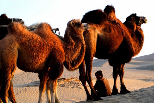 Un hombre cuida de sus camellos en el desierto de Taklimakan, al sur de la región autónoma Uygur de Xinjiang, el 29 de octubre de 2013. [Foto/IC]