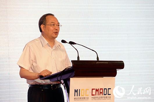 El presidente del Diario del Pueblo Yang Zhenwu pronuncia un discurso en la Conferencia para el Desarrollo de Internet Móvil 2014 en Pekín, el 12 de junio de 2014. (Foto / Pueblo en Línea)