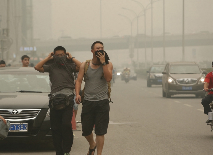 La gente se cubre la cara mientras camina en Wuhan, el jueves 12 de junio de 2014. [Fotografía de Jin Siliu/Asianewsphoto]