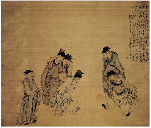 La pintura de Huang Shen muestra a Zhao Kuangyin, el emperador que fundó la dinastía Song jugando al cuju con su hermano Zhao Guangyi, el siguiente emperador, y otros ministros.
