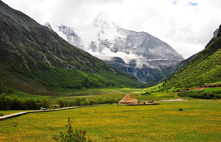 Paisaje de Daocheng Yading en la provincia de Sichuan. Situado al sureste de Daocheng, el paisaje de Yading es un entorno natural virgen. El nombre tibetano de Yading es "Nyiden", que significa "de cara al sol" y viajeros de todas partes se refieren a este lugar como la última tierra pura del planeta azul. [Foto/IC]