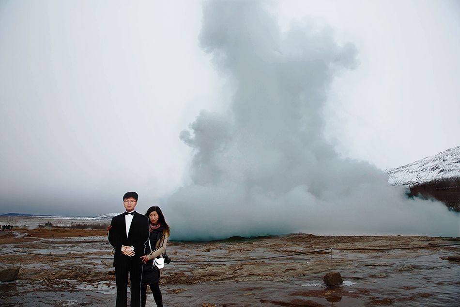 Yang y su "Padre" en frente del Geysir de Islandia.