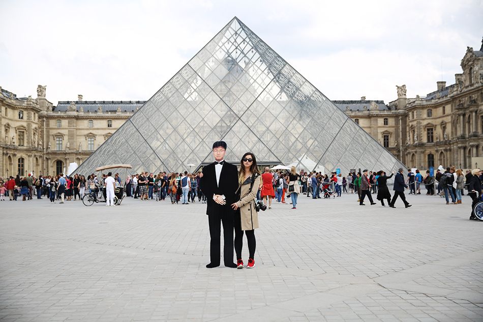Yang y su "Padre" en frente del Museo del Louvre en París.