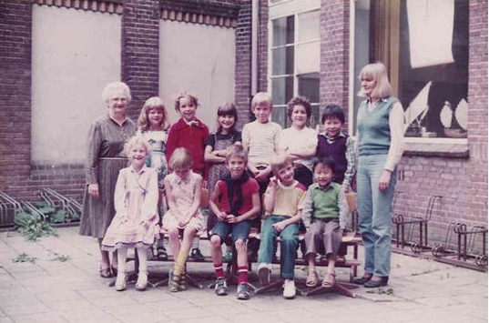 Chan en su clase de pintura durante su primer a?o en la escuela primaria.