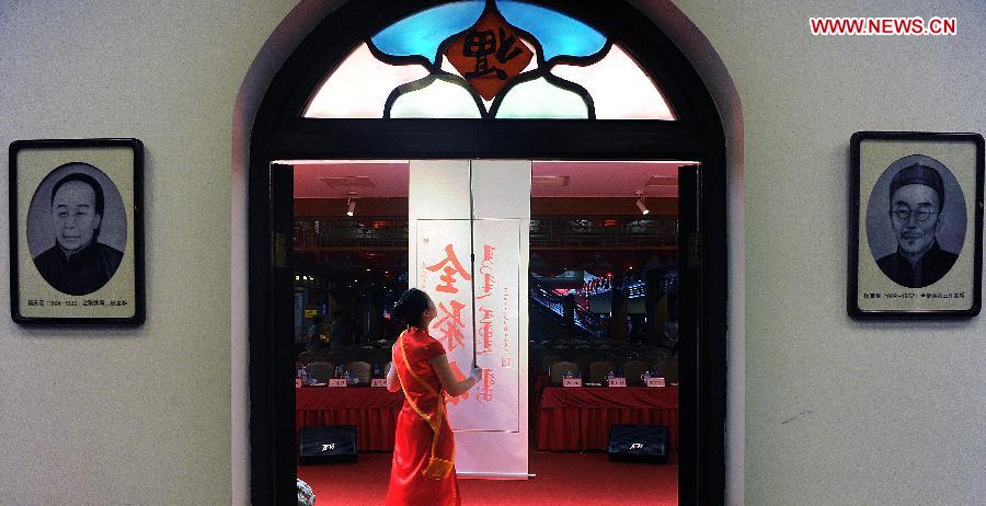 Una camarera se prepara para la celebración del 150 aniversario del restaurante de pato laqueado Quanjude de Qianmen, en Pekín, el 2 de julio de 2014.