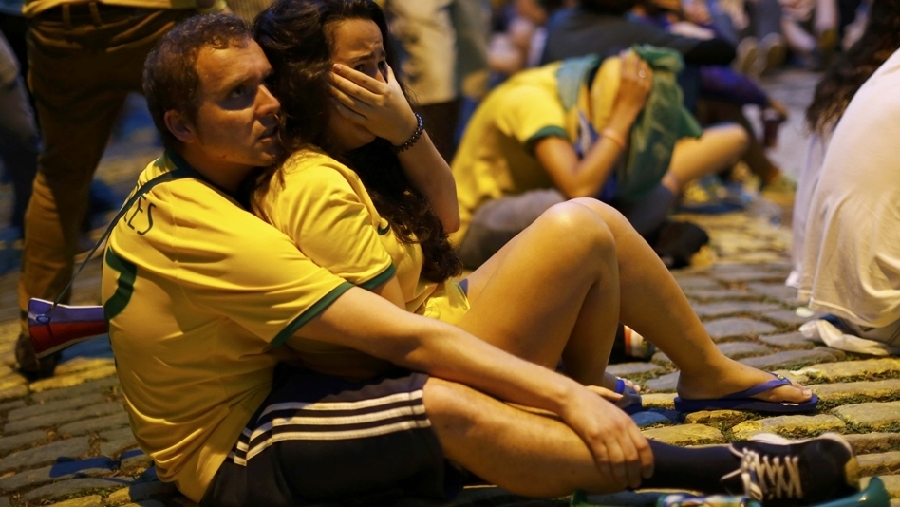 Una pareja miraba en Río de Janeiro la peor derrota que ha enfrentado la 'verdeamarela'.