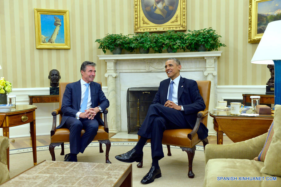 WASHINGTON, 8 jul (Xinhua) -- El presidente de Estados Unidos, Barack Obama, y el secretario general de la OTAN, Anders Fogh Rasmussen, se reunieron hoy en la Casa Blanca en donde discutieron la situación en Ucrania y Afganistán.