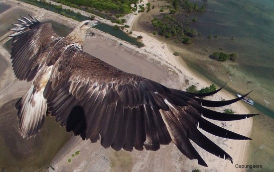 El que ha ganado el primer lugar proviene de Indonesia, llamado Ddendi Pratam. Su foto captura un águila volando en el Parque Nacional de la isla de Bali. Según Pratam, ha notado que esta águila seguía estrechamente al avión, pero no lo atacó sino divertió con él. El segundo lugar ha sido otorgado a Jericho Saniel Lunario de las Filipinas, que fotografió un parque de Caloocan, en la ciudad de Manila, Filipinas, donde hay gente haciendo ciclismo o jogging, así como turistas. Lunario dijo: “ Al ver esta foto, me alegra que mi vehículo les hayan traido felicidad.” Dominique Reginensi Reignier-Esery ha logrado el tercer lugar con un foto sobre la puesta del sol de Annecy de Haute-Savoie en Francia. Capturó el instante cuando la luz del sol pasó por el castillo del barrio antiguo, reflejando en el puente una luz tan brillante como un arco iris.