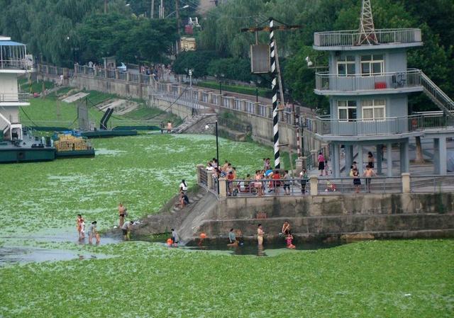 Cerca del puente Jianghan de la ciudad Hankou, toda el agua cercana a las riveras del río están cubiertas de estas plantas. A pesar de ello, hay mucha gente que acude a este particular lugar escénico de la ciudad para disfrutar del frescor, nadar y pescar.