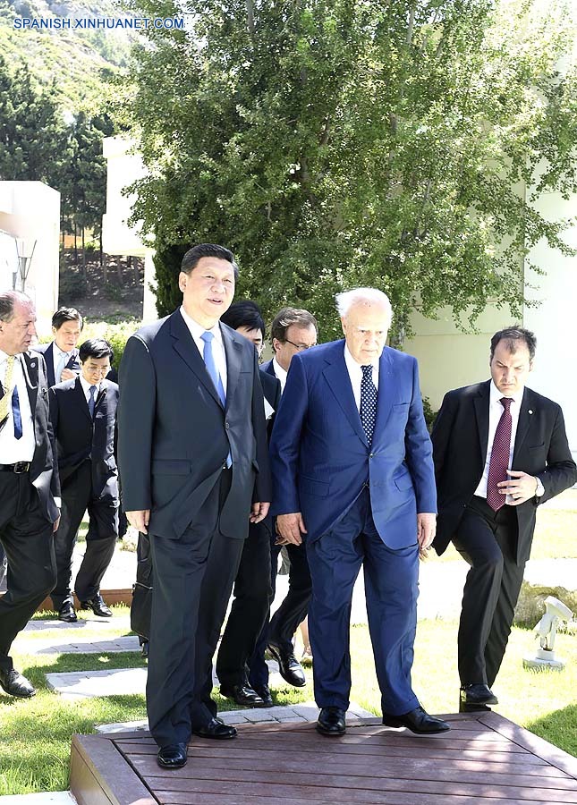 RODAS, Grecia, 13 jul (Xinhua) -- El presidente de China, Xi Jinping, se reunió hoy en Rodas con su homólogo griego, Karolos Papoulias, para intercambiar puntos de vista sobre el desarrollo de los lazos bilaterales y sobre importantes asuntos regionales e internacionales de interés común.