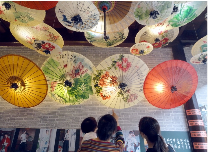 Las mujeres en la antigua China utilizan sombrillas de papel aceite para protegerse de los rayos del sol. Estas sombrillas, hechas de bambú y papel engrasado, pueden ser de colores y llevar hermosos dise?os pintados. Hoy en día, las personas los usan para decorar el hogar.