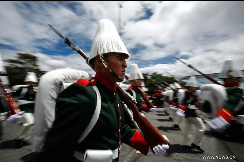 Un cadete de las fuerzas armadas participa en el desfile militar anual para conmemorar el Día de la Independencia, en la ciudad de Bogotá, capital de Colombia, el 20 de julio de 2014. (Xinhua/Jhon Paz)