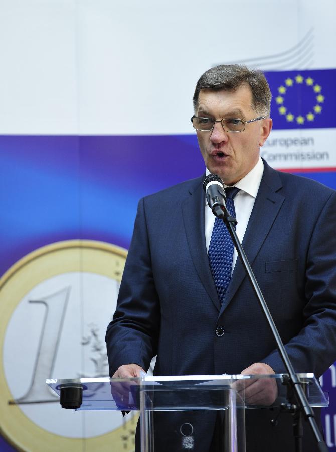 El primer ministro lituano Algirdas Butkeviciusda un discurso durante la ceremonia de anexión de Lituania al Euro celebrada en la sede de la UE en Bruselas, capital de Bélgica, el 23 de julio de 2014. El Euro empezará a circular en Lituania el 1 de enero de 2015 y ya serán 19 los países que conformen la eurozona, de los 28 de la Unión Europea.
