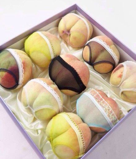 Un melocotón con bikini cuesta 55 yuanes ?Me lo comprarás por el día de los enamorados?