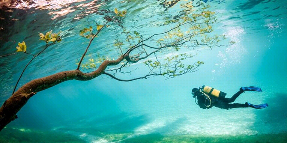 Esta foto del Lago Verde de Austria, muestra un fenómeno natural que ocurre durante la primavera, tras el deshielo del invierno, cuando el lago aumenta 10 metros. Al subir el nivel del agua, el lago cubre los árboles, los caminos y los bancos del parque aleda?o. Es un paisaje sumergido único y de corta duración.