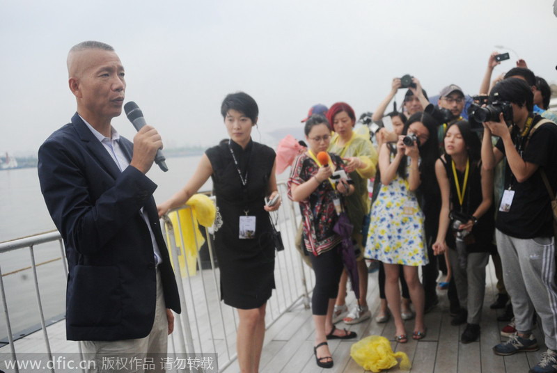 El reconocido artista chino Cai Guoqiang cdialoga con la prensa, en la orilla del río Huangpu, en Shangai. Cai Guoquiang es muy conocido por sus propuestas artísticas en fuegos artificiales. Fue el creador del espectáculo de fuegos artificiales durante las ceremonias de inauguración y clausura de los Juegos Olímpicos de Beijing 2008.