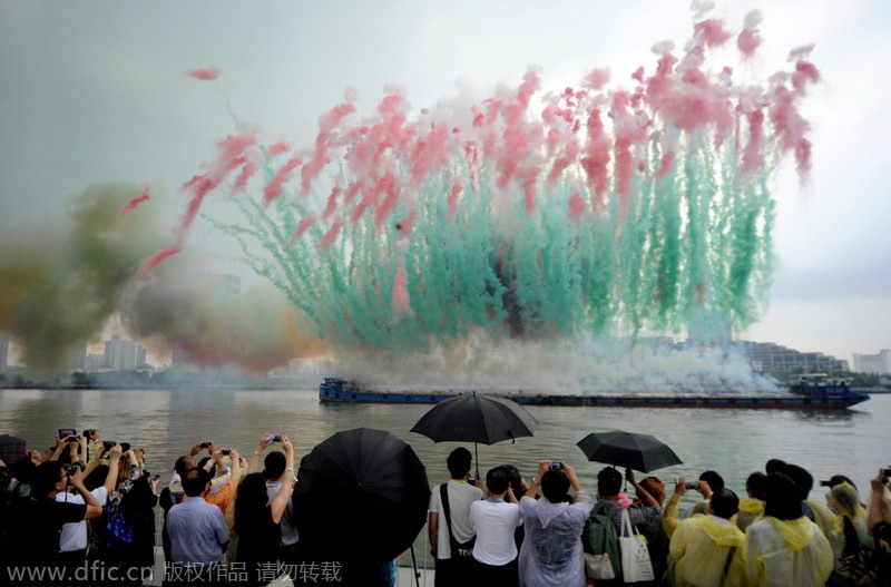 Cai Guoquian exhibe con fuegos artificiales en la ribera del río Huangpuen, en Shanghai. [Foto/IC]