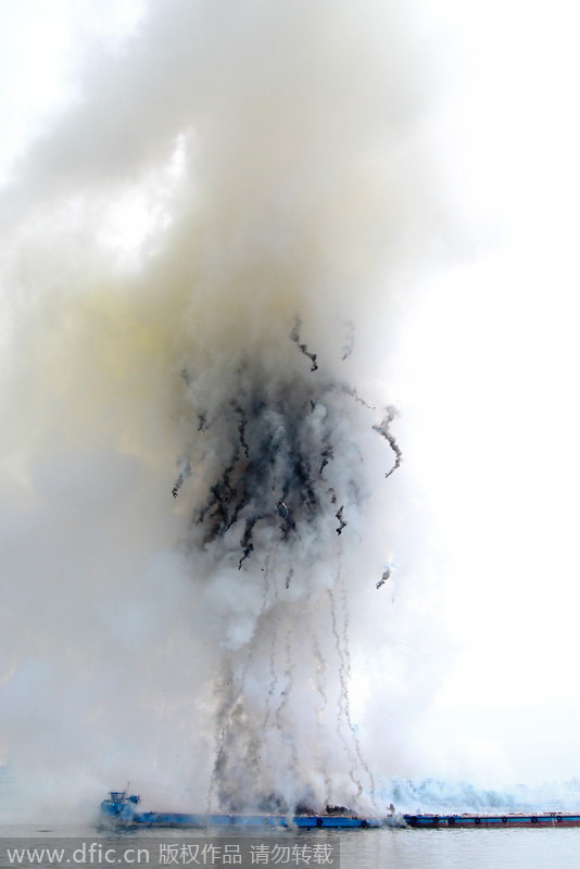 Cai Guoquian exhibe con fuegos artificiales en la ribera del río Huangpuen, en Shanghai. [Foto/IC]