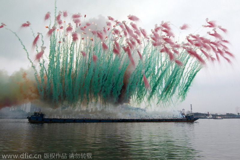 Cai Guoquian exhibe con fuegos artificiales en la ribera del río Huangpuen, en Shanghai. [Foto/IC]