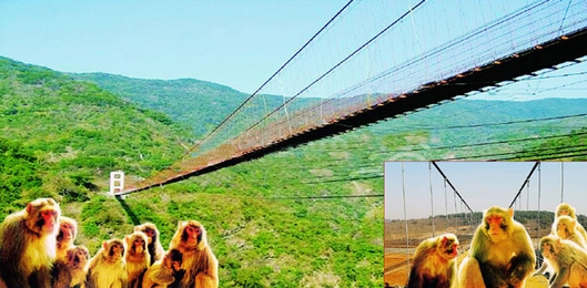 La administración forestal local dijo que más de 500 monos viven en las monta?as cercanas al río, sobre el cual hay cuatro puentes para los animales.
