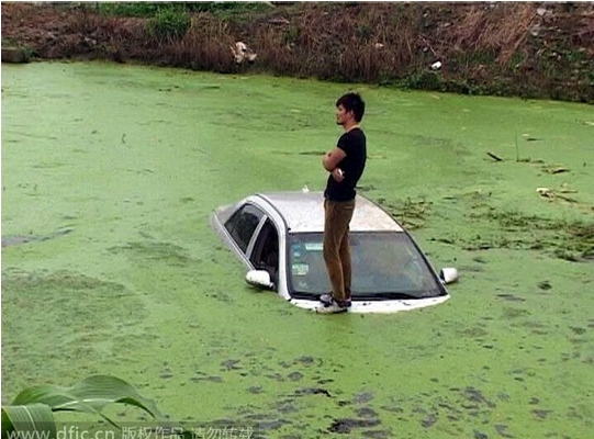 12/08/2014 (El Pueblo en Línea) - Un conductor espera a que lo rescaten encima de un coche que se está hundiendo en un río en Nanjing, provincia de Jiangsu, el 10 de agosto de2014. El conductor perdió el control del coche por causas desconocidas y terminó en el río. Según Asociación de Tráfico en las Carreteras de China, en 2012 se produjeron 4,72 millones de accidentes de tráfico en el país. En más de 200.000 accidentes hubo víctimas, con un total de 59.997 muertos y 224.327 heridos. [Foto/IC]