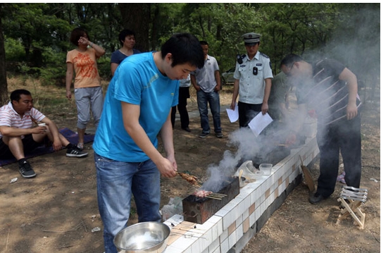 Disfrutando el placer de una barbacoa en el distrito de Tongzhou, en Beijing. Los residentes violan la regulación oficial que prohibe dicha actividad para evitar la contaminación del aire. [Foto: Hei Ke / China Daily]