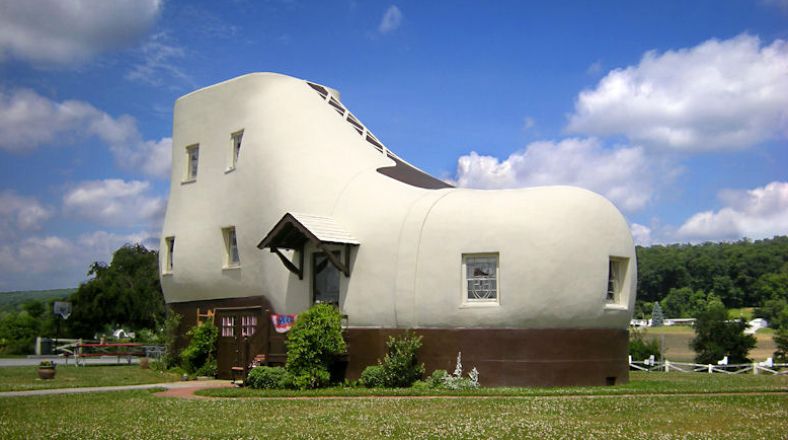 Pekín, 14/08/2014(El Pueblo en Línea)-La casa zapato: Esta peculiar residencia está situada en Hellam, Pennsylvania, fue construida para el dise?ador y vendedor de zapatos Mahlon N. Haines, quien la utilizó originalmente como casa de huéspedes. Tiene unos 8 metros de alto y 16 de ancho, con cinco niveles diferentes por dentro, tres dormitorios, dos ba?os, una cocina y una sala de estar.