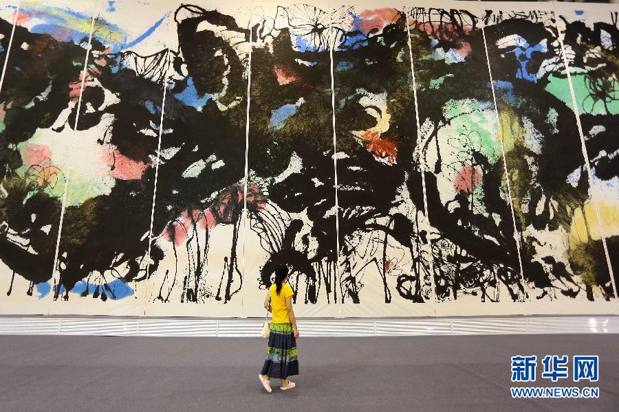 El 18 de agosto, un visitante aprecia la enorme pintura tradicional china llamada “Dahaoheshan”, creada por Cui Zimo. Agencia de Xinhua. (Foto: HanHua)