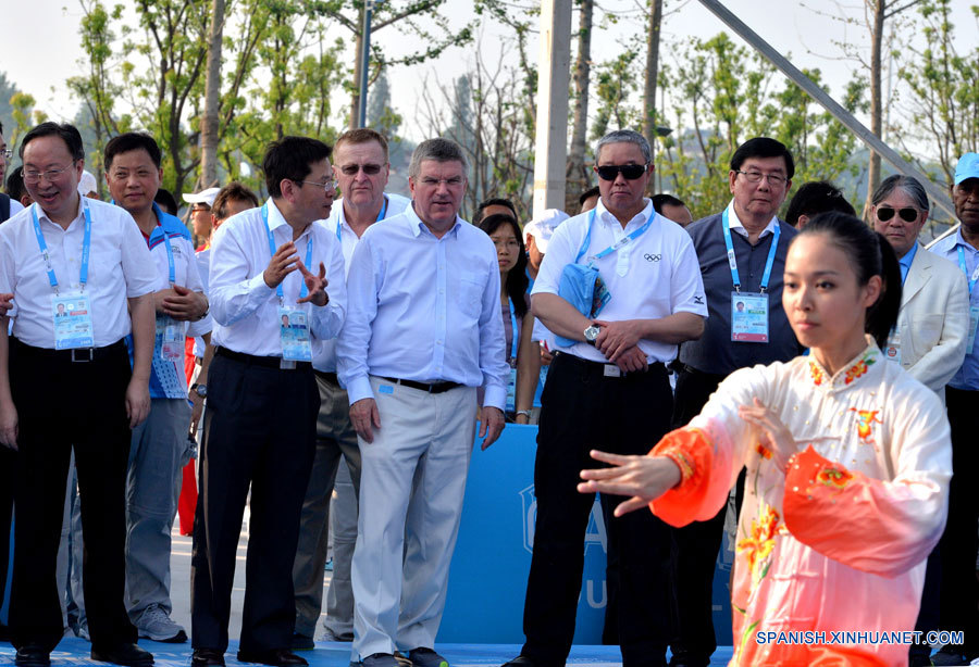 NANJING, China, 21 ago (Xinhua) -- El presidente del Comité Olímpico Internacional (COI), Thomas Bach, visitó hoy el Laboratorio Deportivo Nanjing 2014, donde se reunió con jóvenes atletas y funcionarios de las disciplinas de patinaje con patines y con monopatín, así como alpinismo y wushu.