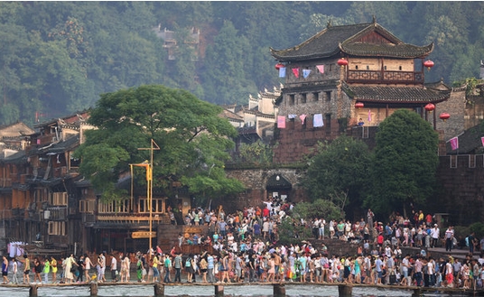 25/08/2014 (El Pueblo en Línea) - La antigua ciudad Fenghuang recibe miles de turistas. El 15 de Julio la ciudad registró las precipitaciones más fuertes, desde que comenzaron los registros meteorológicos en Fenghuang. Un tercio de la ciudad fue inundada por el agua que llego a más de un metro de altura. El trabajo de reconstrucción terminó el 15 de agosto. [Foto/ PPC]