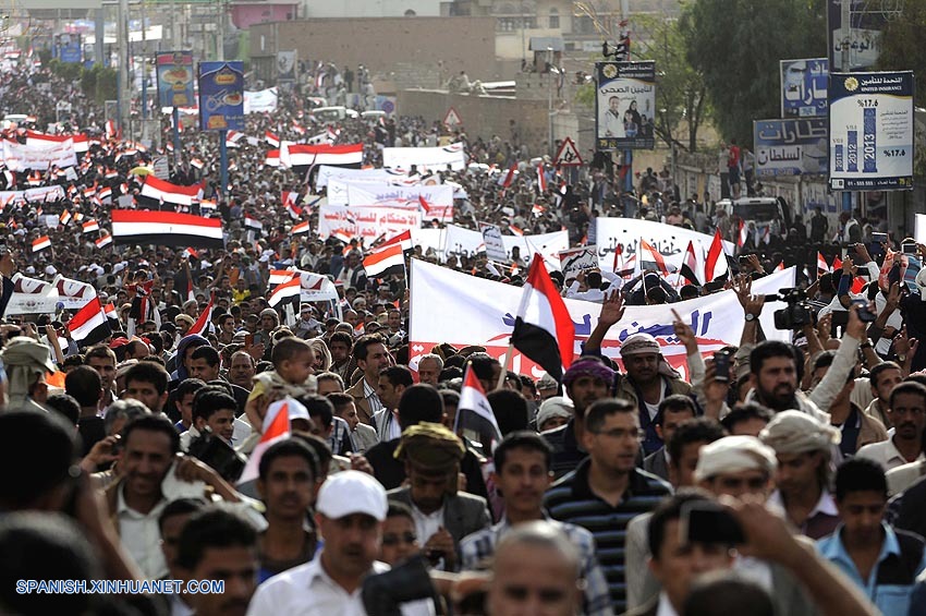Decenas de miles de yemeníes a favor y en contra del gobierno organizaron hoy manifestaciones en Saná, capital de Yemen, mientras aumentan las tensiones tras el fracaso de las conversaciones entre el gobierno y el grupo chiita houthi.