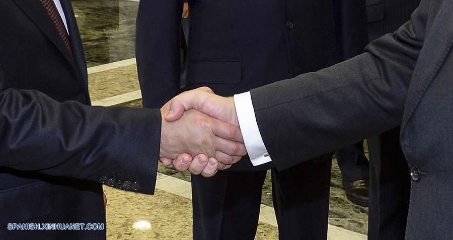 Putin y Poroshenko se saludan de mano antes de conversaciones en Minsk