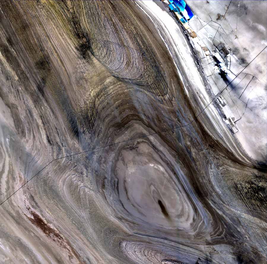 Foto de alta definición tomada por el satélite de observación de la tierra Gaofen-1. La imagen muestra el lecho de un lago seco en la provincia de Gansu.